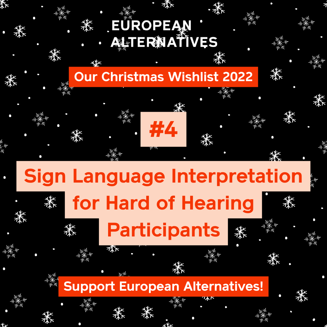 Our Christmas wish is therefore for you to use this time to make a one-time donation to European Alternatives or to become a supporting member. Because only together, when people dedicate their hopes, time, and also money, can we make the political miracles happen – those that we wish for more strongly every year.