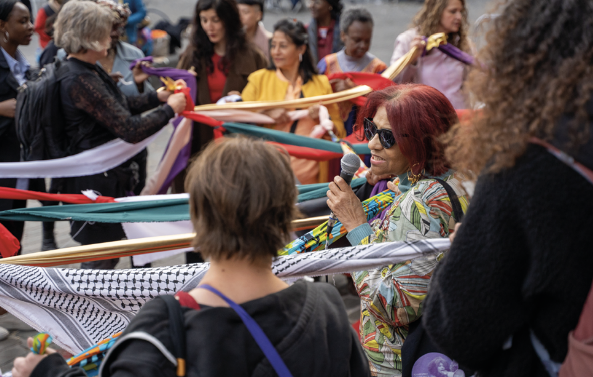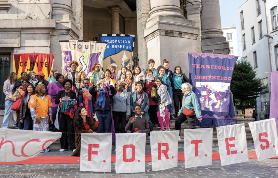 The compañeras of Territorio Doméstico – a transborder collective of immigrant women based in Madrid – arrived dancing, their songs already a political program. One of the women ready to welcome them, from La Ligue des Travailleuses Domestiques, part of the CSC/Brussels union working with migrant domestic workers, told us she immediately thought: Something is about to happen here.