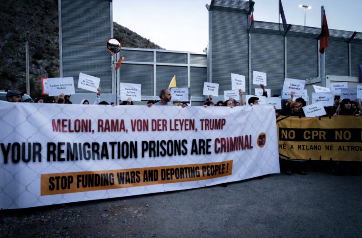 On November 1–2, 2025, the Network Against Migrant Detention—a coalition of Italian and Albanian organizations united in opposing the Rama–Meloni agreement—gathered in Albania for a two-day mobilization. The agreement has enabled the creation of two migrant detention centers in Albania under Italian jurisdiction. This was the Network’s second largescale action, following the December 2024 protest when the centres were still empty.
